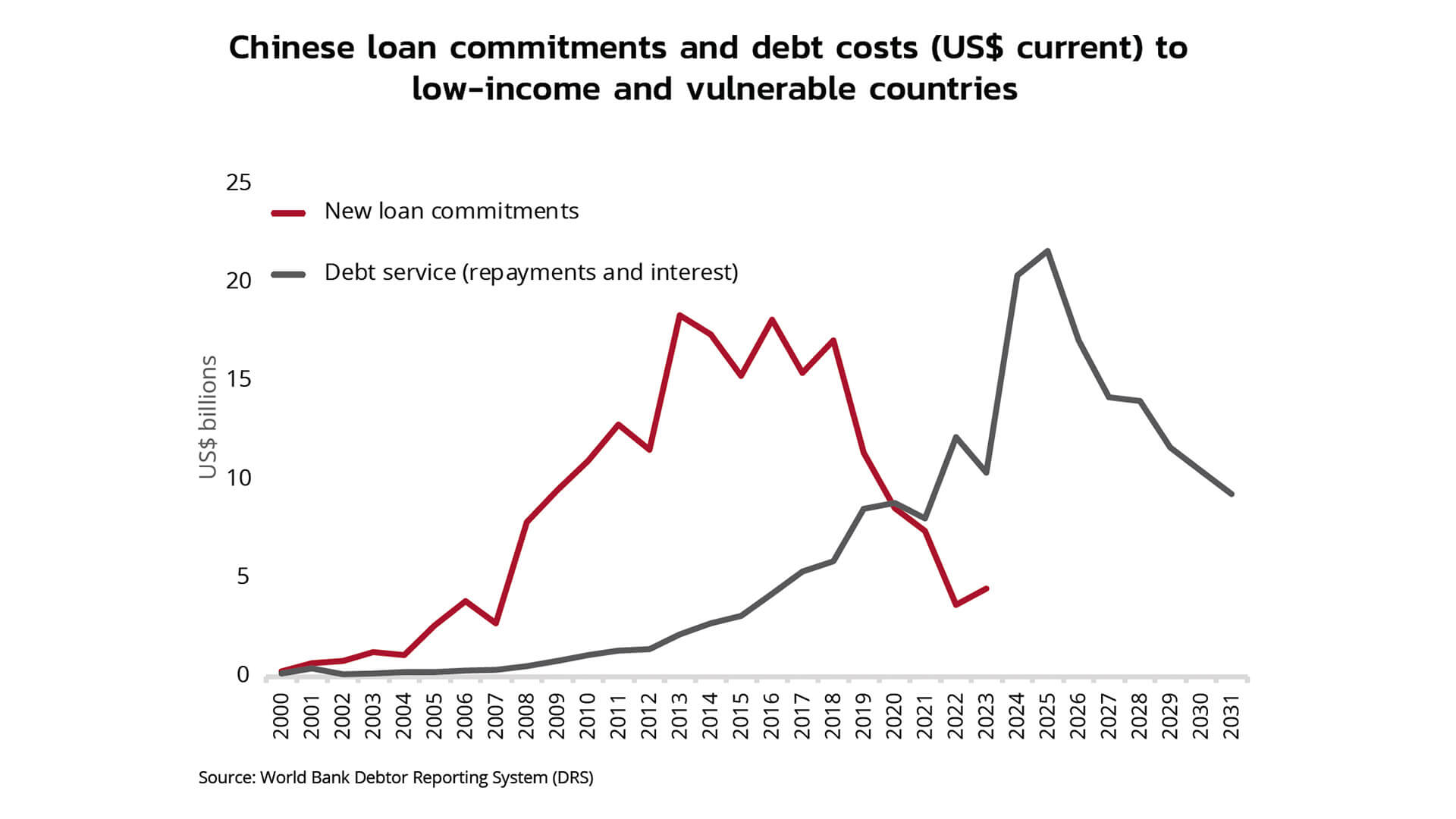 Over the past decade, China’s role in developing-country finance has shifted dramatically. Once the leading lender to low-income nations, especially through its Belt and Road Initiative (BRI), China is now the largest recipient of debt service payments from these same countries. While Chinese lending peaked in 2013 at about $18 billion, it has since declined sharply. In contrast, debt repayments by developing economies to China reached $33.6 billion in 2024, more than twice the amount paid to traditional Paris Club lenders, according to World Bank data. Payments from low-income and vulnerable nations are projected to hit a record $22 billion in 2025, intensifying fiscal pressures and limiting economic growth.