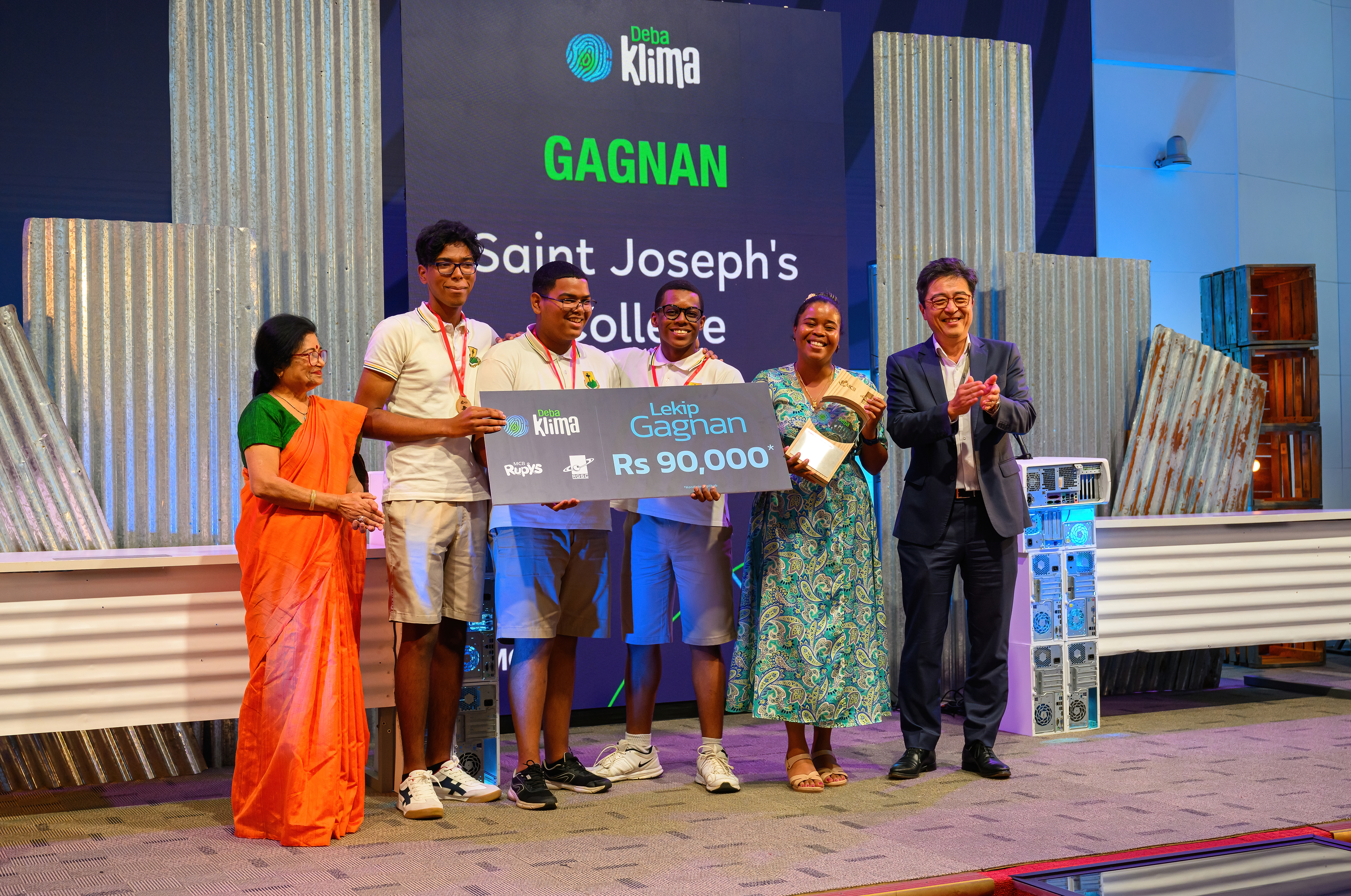 The boys of St Joseph's College won Deba Klima Sezon 2. The competition, which ran on national TV channel, MBC since 18th May, came to a close on 6th July with the final. Deba Klima is an initiative of the MCB and the Rajiv Gandhi Science Centre, with the collaboration of Dr. François Gemenne, a specialist in environmental geopolitics and migration.