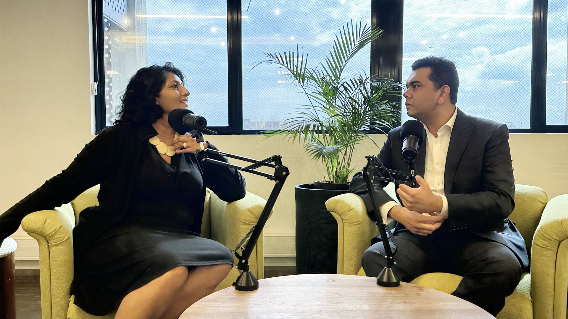 Deepa Bhookhun Rainer, Editorial Content Creator, MCB and Ashvin Deena, Head of Global and International Corporates (GIC),MCB, during the recording of MCB Talk's podcast.